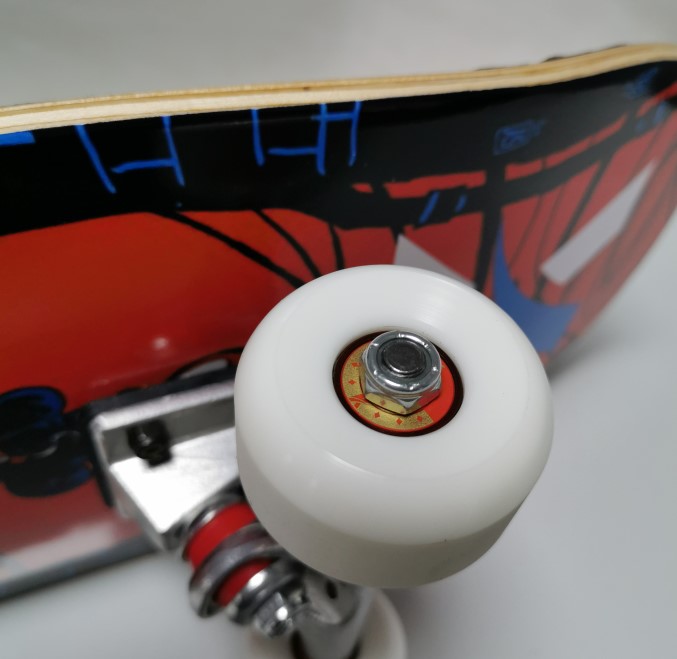Bearings are very important if you want to keep rolling without pushing constantly, especially while street skating. They’re typically rated with the ABEC (Annular Bearing Engineering Committee) scale. The ABEC scale only measures the precision of the bearing, not how well it rolls or how long it lasts. It’s a common misconception that the ABEC scale refers to how fast the bearing rolls. Anything above 1 is precision and will perform fine for skateboarding, but it’s recommended to go above a 3.